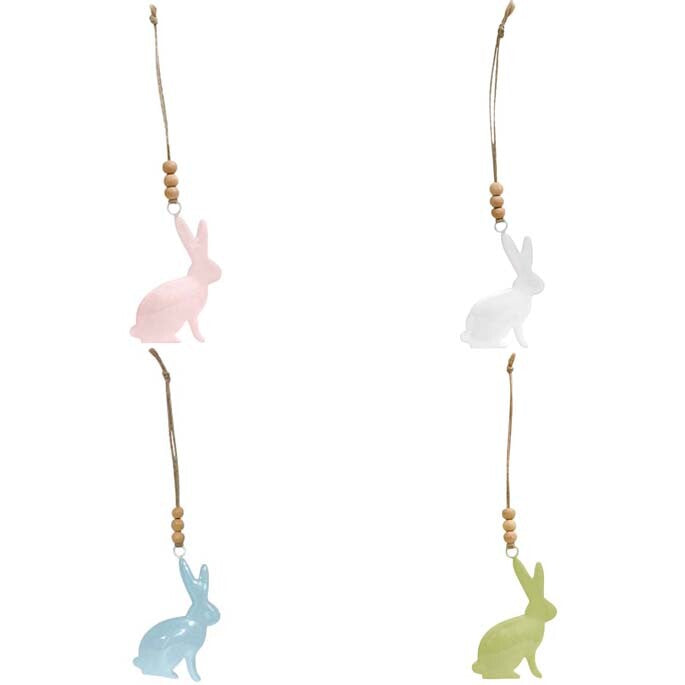 Bring understated elegance to your seasonal displays with this charming set of four rabbit hangers. Each 8x6cm piece features soft pastel tones that complement any décor scheme, while rustic wooden bead accents on natural twine add warmth and texture. Perfect for Easter vignettes, gift wrapping, or layering into your home fragrance and décor collections, these delightful ornaments blend timeless appeal with versatile styling potential.