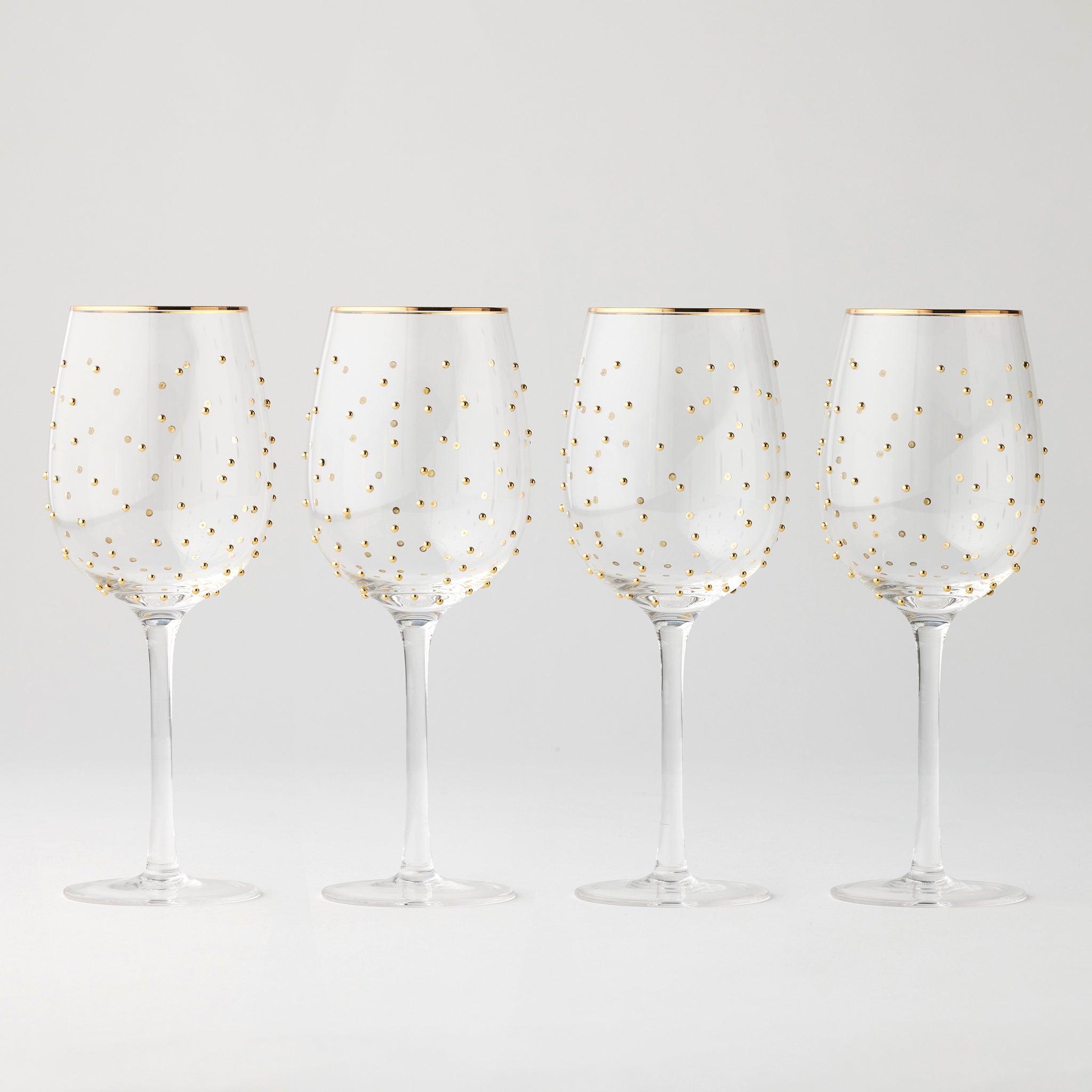 Add a touch of sophistication to any setting with the Dotti Wine Glasses by Pilbeam Living. This set of four 400ml glasses features delicate raised gold dots and a refined gold rim, bringing effortless elegance to the table. Stylish and versatile, they’re perfect for both relaxed pours and special occasions. Presented in a stylish printed box, ideal for gifting.