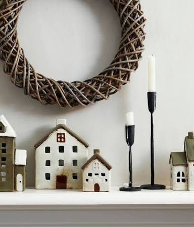 Add a touch of village whimsy with these delightful tea light houses from French Country Collections. Measuring 9cm long, 7cm wide, and 12cm high, each ceramic villa shines warmly.