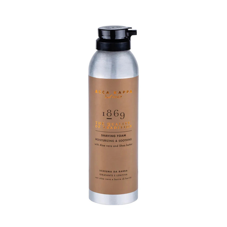 Acca Kappa's 1869 Shave Foam contains rice bran oil, renowned for its softening and smoothing effect on the skin. Sweet almond oil provides deep nourishment, whilst aloe vera extract has an important protective action that reduces irritation and reddening. Suited for sensitive skin and tough beards.
