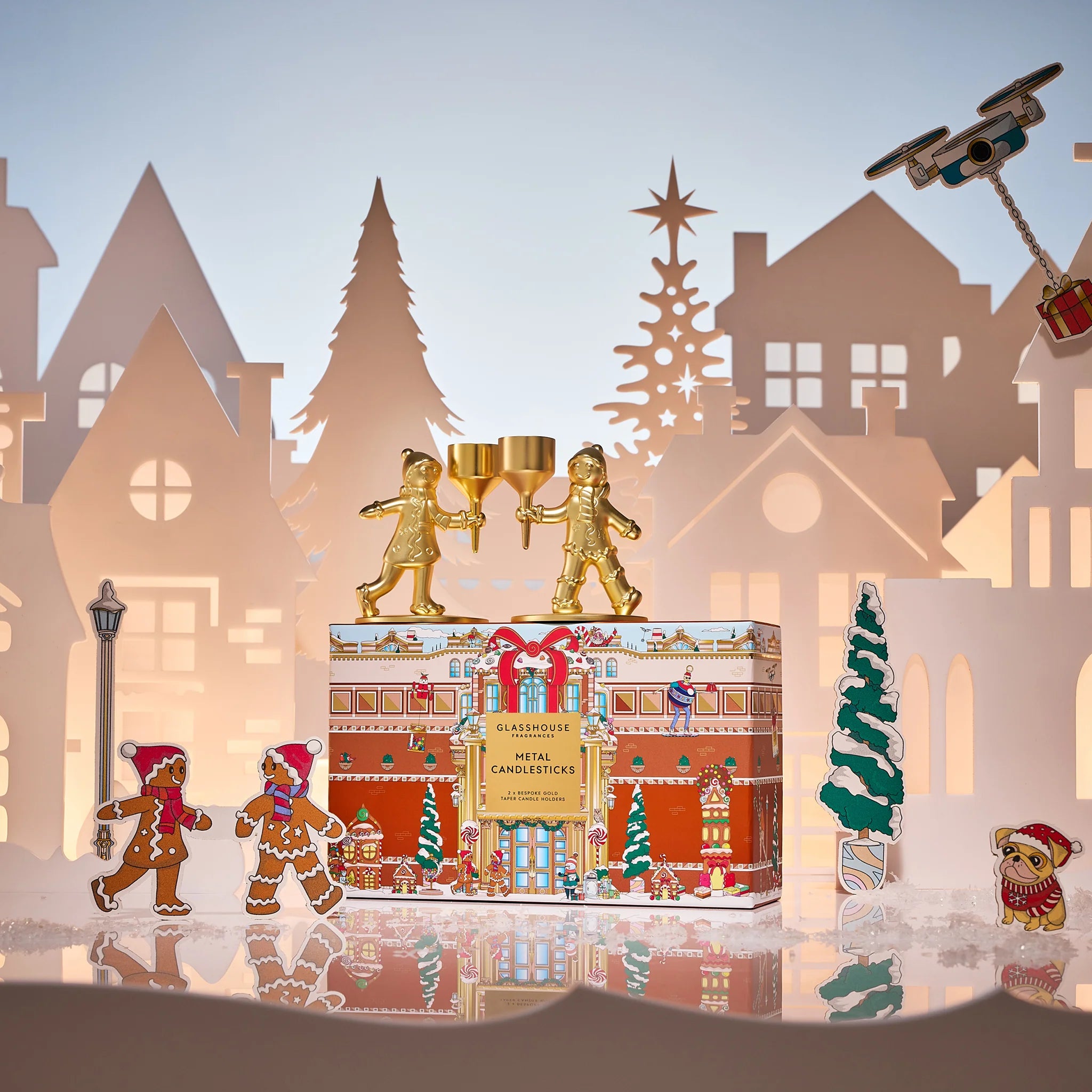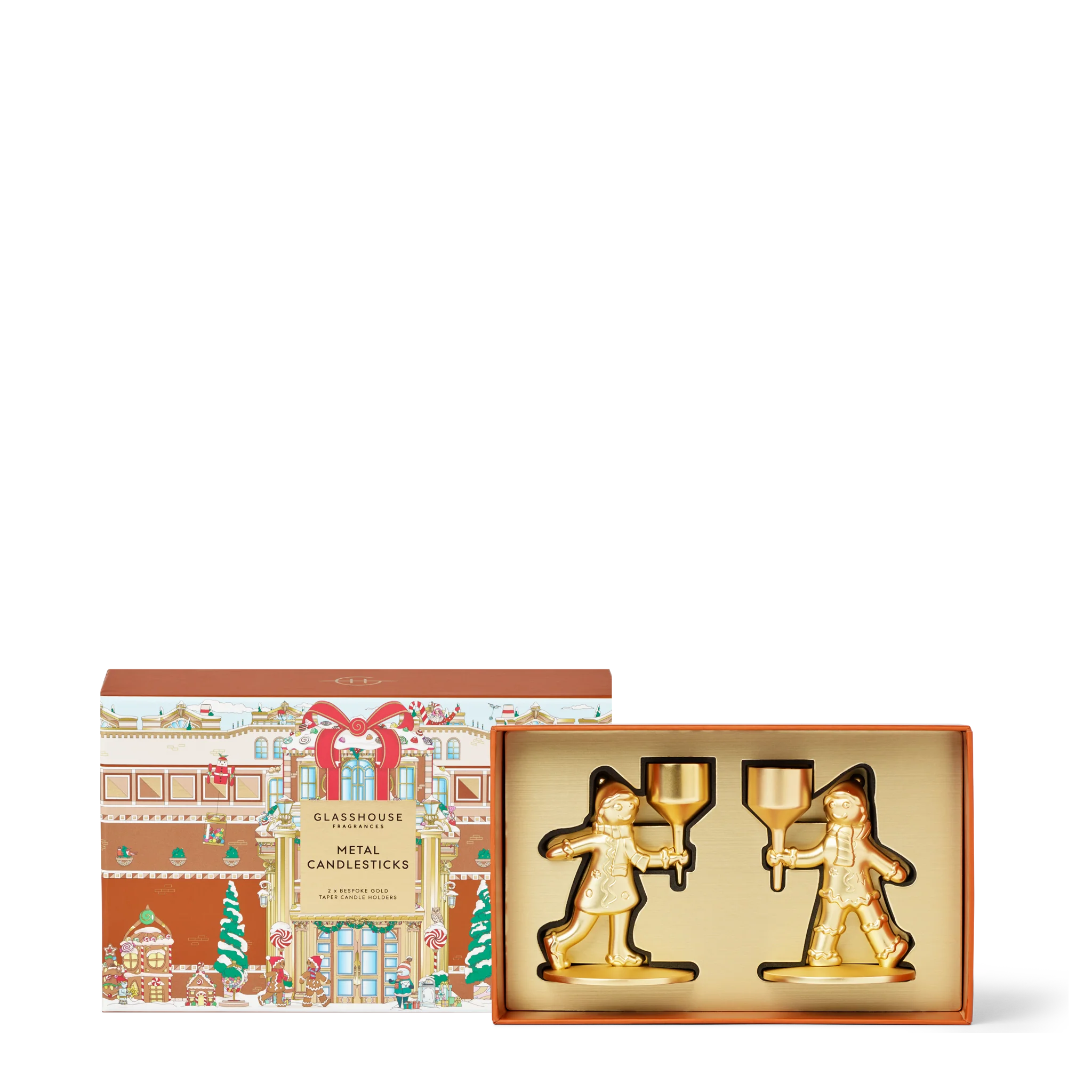 GLASSHOUSE FRAGRANCE METAL CANDLESTICK HOLDERS